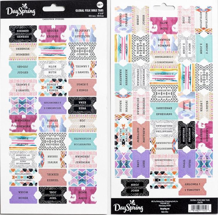 Great for getting where you want to go! Mark the books of your Bible (Old Testament and New Testament) with these fun, colorful patterned Bible Tab Stickers and enjoy more time reading, less time searching!